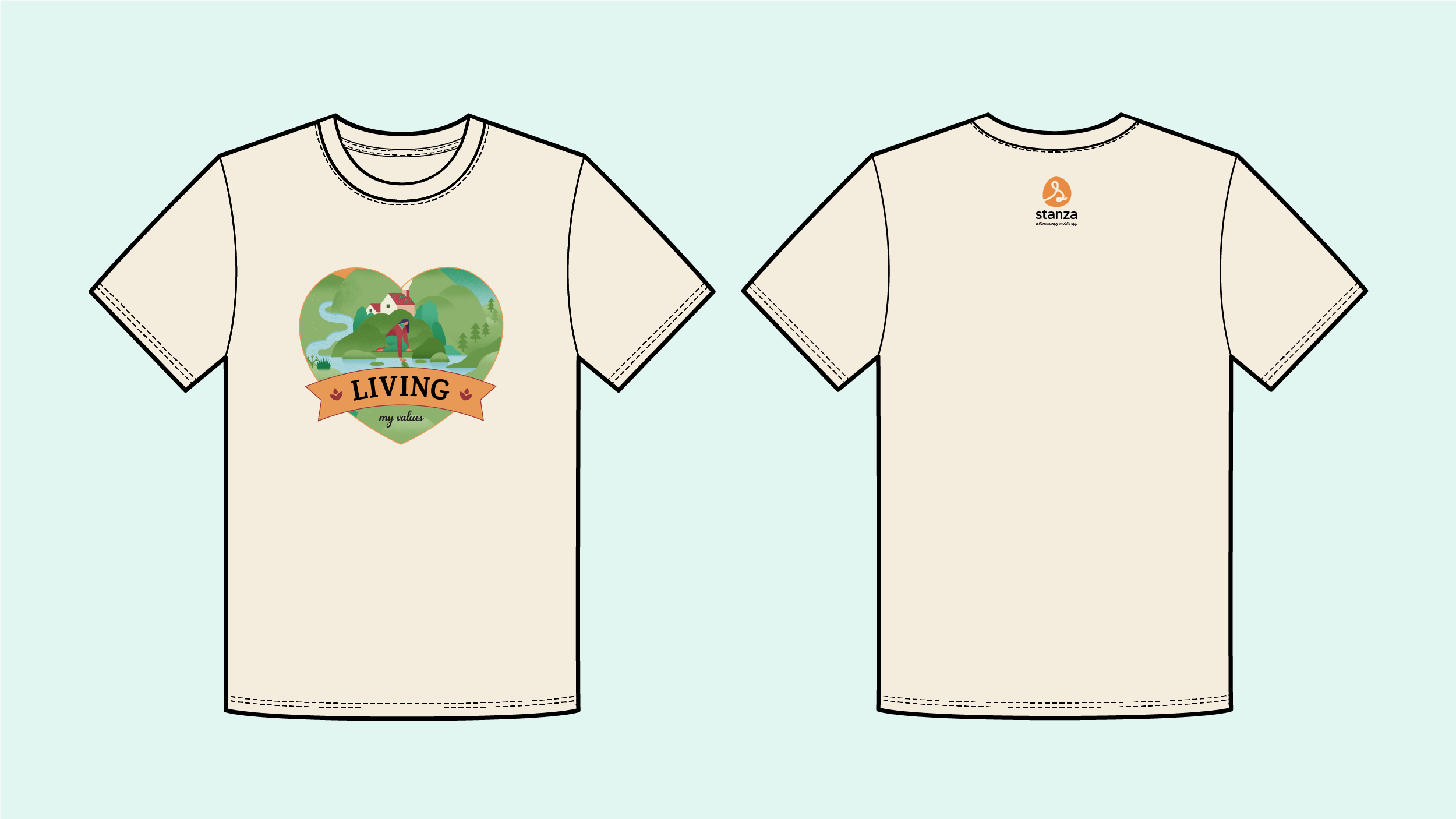 For the T-shirt, I developed a series concept rooted in the app’s therapeutic themes. Each design translated key ideas from the product, living my values, creating space, persisting, not resisting, into wearable affirmations. The goal was to create something participants could feel proud to wear while reinforcing the core philosophy of the app.