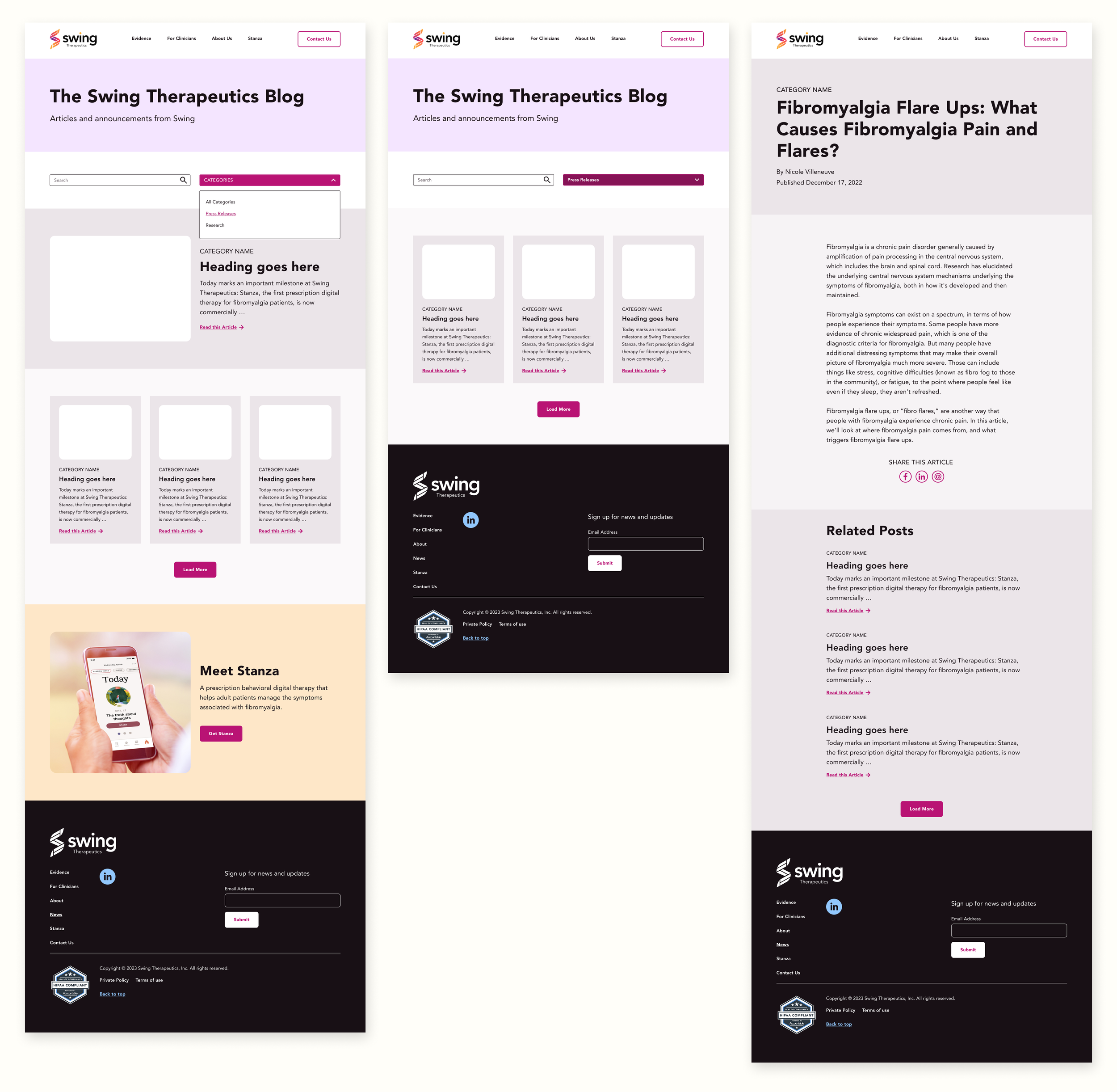 The blog required a full redesign due to responsiveness and functionality issues. To move efficiently, we adapted a blog template previously created for another Swing site and restyled it using our design system.