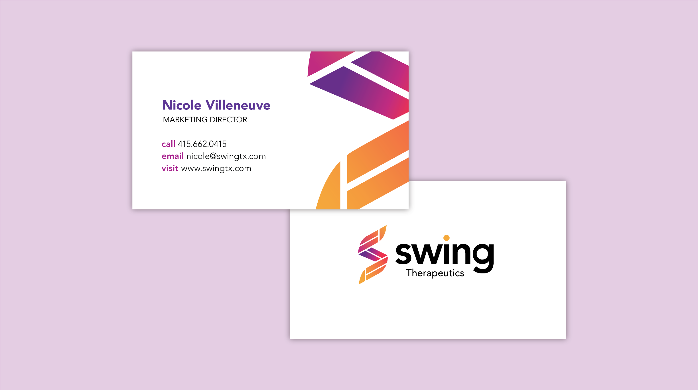 The business cards extended Swing Therapeutics’ visual identity into a tangible touchpoint for in-person networking. Attention to layout, legibility, and print quality ensured the cards felt professional, credible, and aligned with the brand, supporting follow-up after conference conversations.